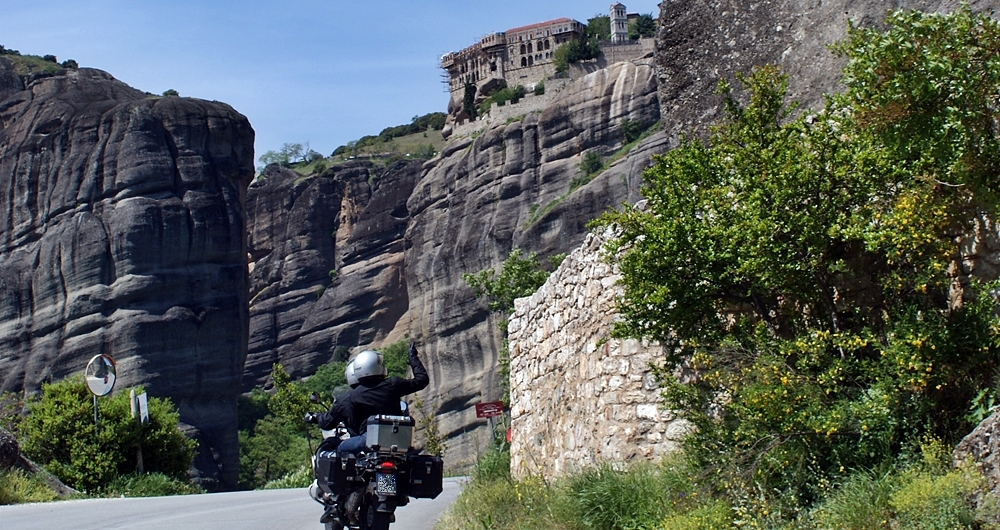 - Day 11 - After a big breakfast with fresh local products, we will head north, to the miraculous Meteora monasteries. The one hour ride to Kalambaka is another great biking route, on a freshly paved twisty road. Meteora is a UNESCO world heritage site, with the monasteries build on the top of vertical cliffs, since 12th century! There are 6 monasteries that are open to the public, and most of them are more a museum than a monastery, with items of immense historical value. In any case, even if you are not interested on religion, you will be amazed from the architecture the way and the location this monasteries are build. After Meteora, we will head to Volos, from some easy, mostly straight county roads, through fields and small villages. If time is enough we might make a detour to visit Plastiras lake, just few kilometers form Karditsa. The last part for today, the road from Volos to Portaria is a challenging meander, with tight turns and hairpins, sometimes used for car racing... We will stay for 2 nights at Portaria, a lovely village, with great view to the bay and city of Volos.