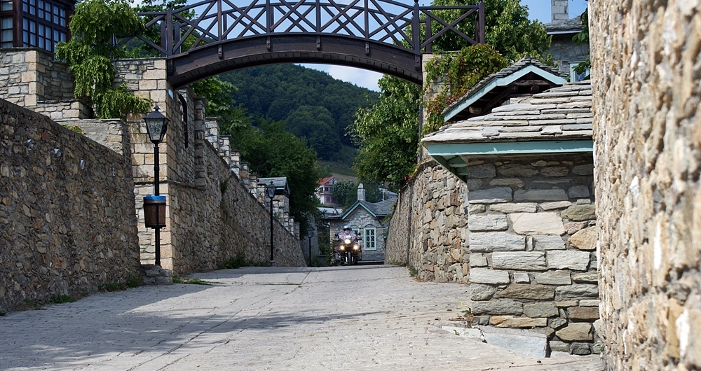 - Day 8 - A short ride will take us to the bridge that connects the small island of Agios Achillios with the shore. There are many legends about this place, but the truth is that there are some very interesting monuments on the island, like the remains of the huge Basilica… Riding in the valley of a small river we will soon arrive at Kastoria. The city is build on a hill next to the lake, and it is famous for the 40+ Byzantine churches, the old mansions and fur production. After Kastoria, we will relax a bit, following a large, easy road for a while. This will take us to Neapoli, where another great route starts: The road to Pentalofos is almost traffic free, full of curves and some demanding turns and of course great scenery! Pentalofos is the home of the most capable stone builders and the churches of the village are the best proof! Lunch in one of the villages taverns is a must…The next 20km from Pentalofos to Eptahori is another surprise, and in our opinion one of the best biking routes in Greece… From Eptahori to Konitsa, you will enjoy riding through valleys and next to rivers, with impressive views to the high mountains that surround the area. From Konitsa we will takea shortcut that will take us to the area of Zagori, that is “behind the mountains”..